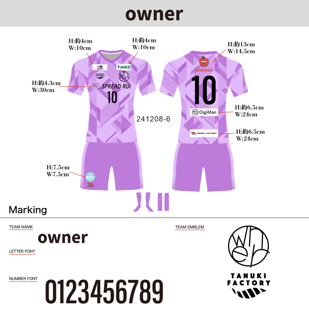サッカーユニフォームのオーダー事例となります!千葉県で活動されている「owner」様の作成事例となります。